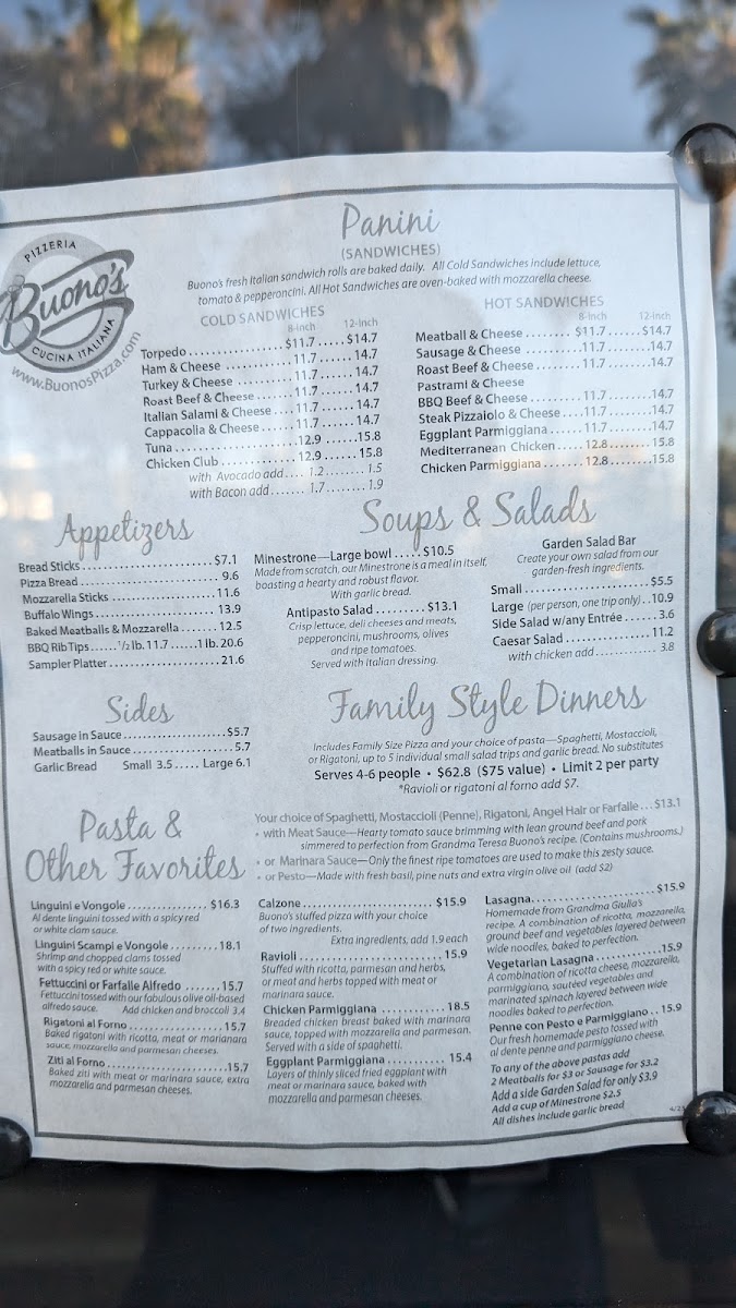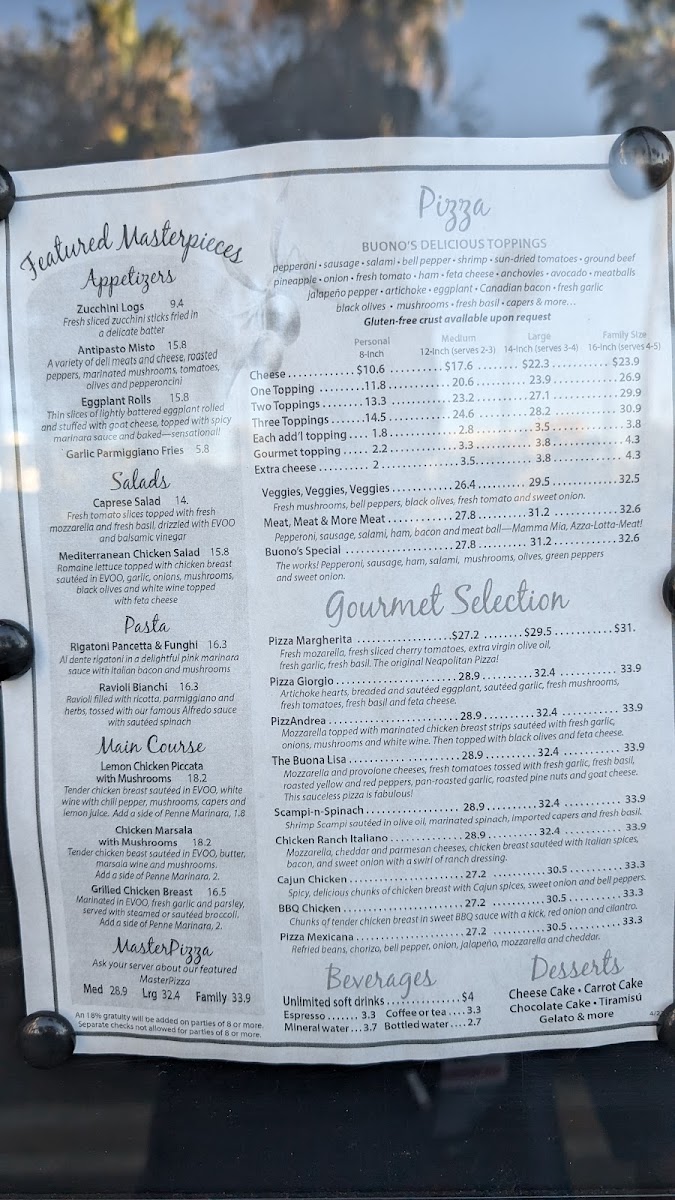 Whether you're looking for a quick bite after a trip to the nearby aquarium or a leisurely meal in their cozy outdoor seating, Buono's Pizzeria offers an inviting space and delectable food that will leave you satisfied and eager to return. Just take it from guests like Elena Roman, who not only discovered Buono's by chance but has since made the trek from Orange County, proclaiming it as a place worth revisiting.