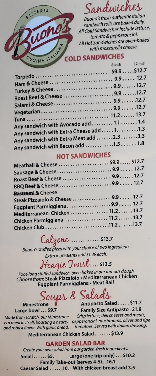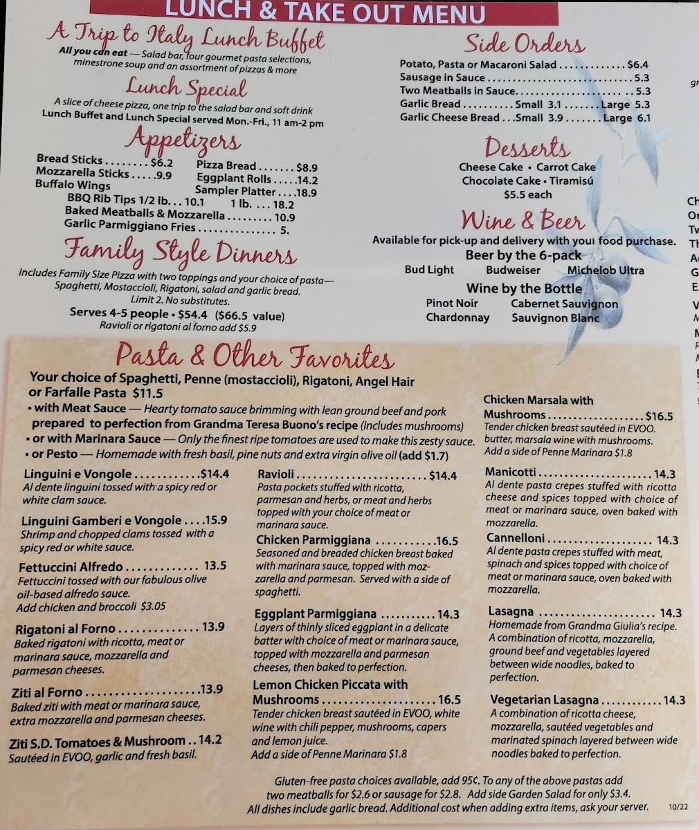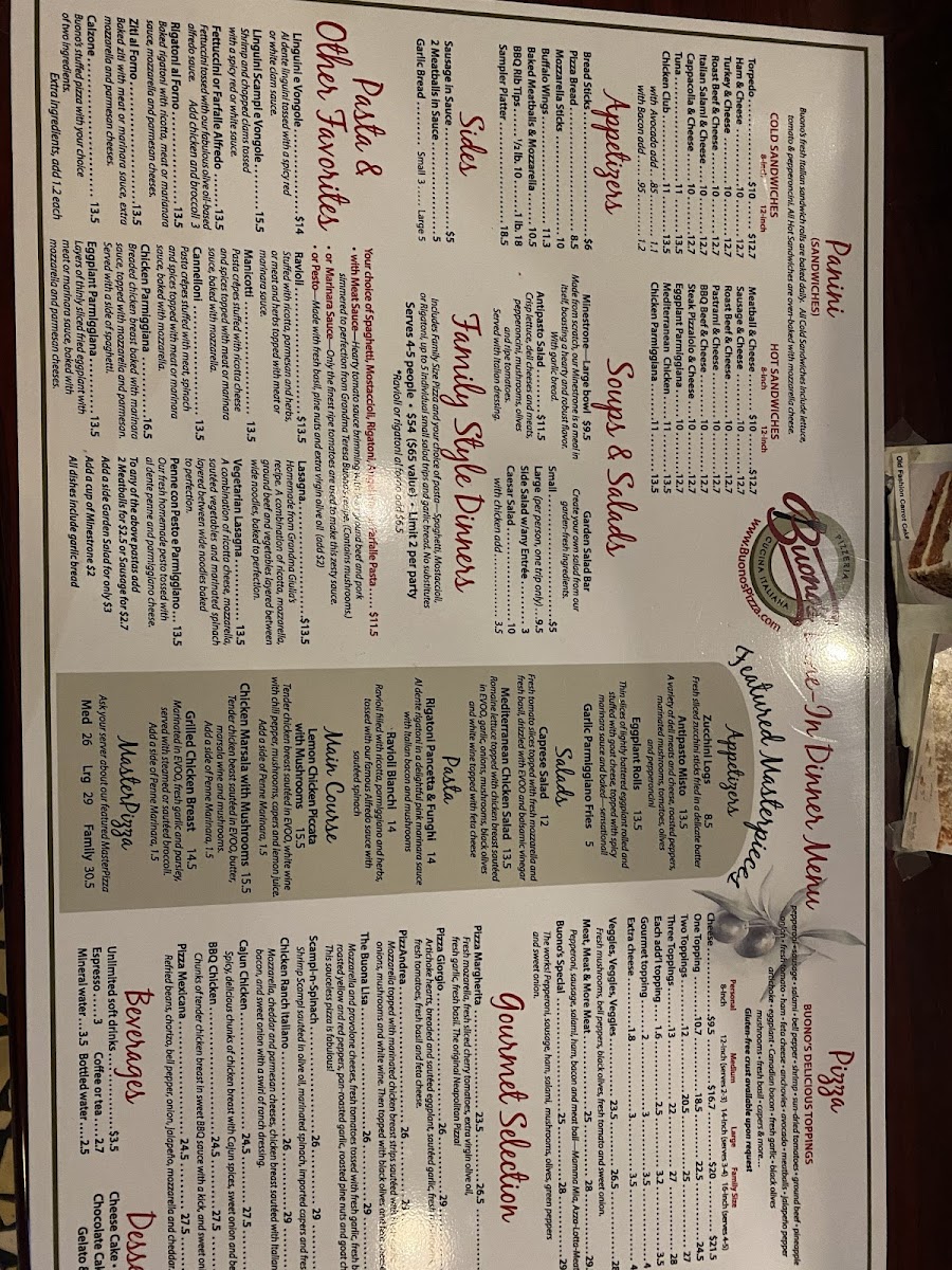 But it’s not just the food that keeps patrons coming back. The service at Buono's can vary; while some reviews mention attentive and cheerful staff, others note areas for improvement in training and enthusiasm. However, even amidst mixed service experiences, the overwhelming response is that Buono's remains consistent in delivering generous portions and reasonable prices, making it a solid choice for a hearty meal without breaking the bank. As one satisfied customer said, "The food was very good, it came out hot and the portions are huge."