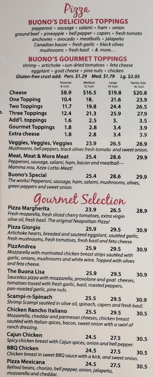 So why wait? Gather your friends or family, head to Buono's, and indulge in a pizza experience that you won't soon forget. With their commitment to quality and a menu that fires up your taste buds, it’s clear why this pizzeria has earned its spot as a beloved staple in the Long Beach community. Don’t miss the chance to eat at Buono's—you may just find your new favorite pizza joint!